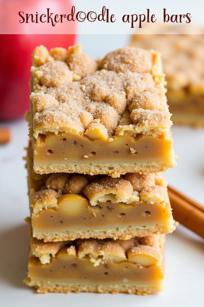 Soft, chewy, and brimming with cinnamon-kissed apples, these bars pack all the nostalgic goodness of snickerdoodles with a seasonal twist. A guaranteed crowd-pleaser for dessert tables, lunchboxes, or cozy coffee breaks.