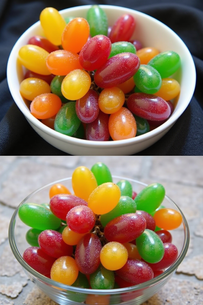 This recipe yields about 24 candied grapes, depending on the number of grapes you coat. Each candied grape is roughly 35–40 calories, given the sugar content from the candy coating. Best enjoyed occasionally, these treats are wonderful for parties, celebrations, or special snack times.